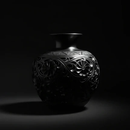 A black ceramic pedestal with lotus flowers dreaming, a ceramic vase carved with ink flowers.